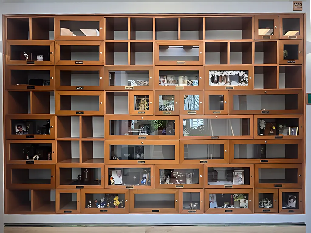 Elaborados en fina madera, nuestros nichos con frente de vidrio permiten incorporar objetos significativos como fotografías, recuerdos o pequeños tributos. Cada espacio se convierte en un homenaje personalizado que mantiene viva la memoria y el legado de tu ser querido, conservando al mismo tiempo una conexión simbólica con el mundo y con quienes lo siguen recordando.